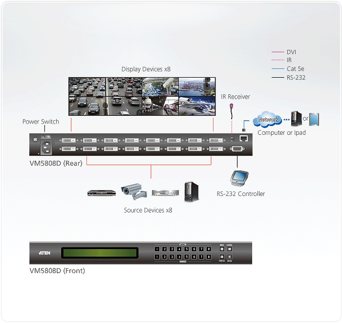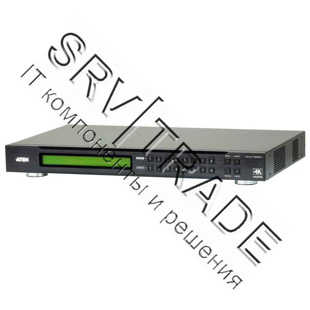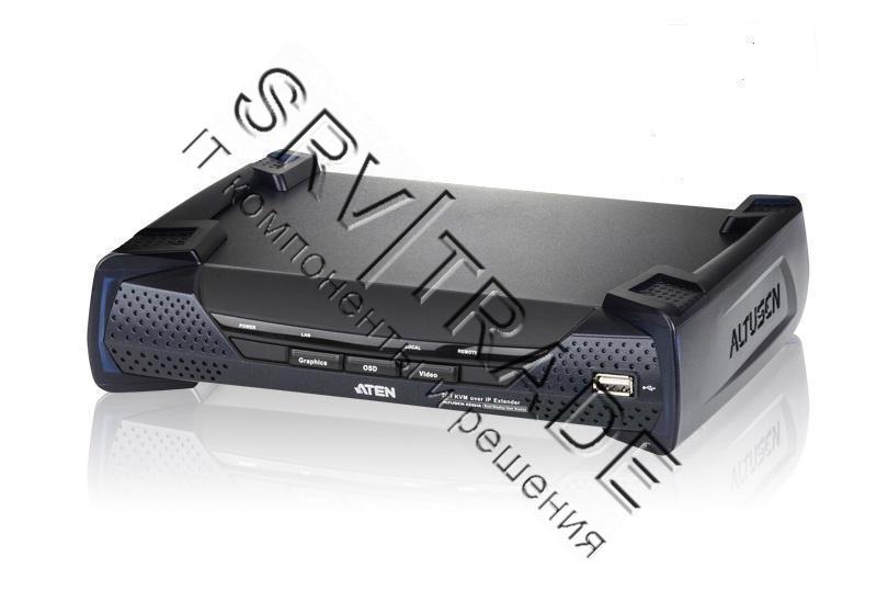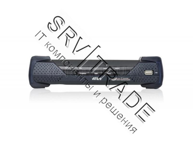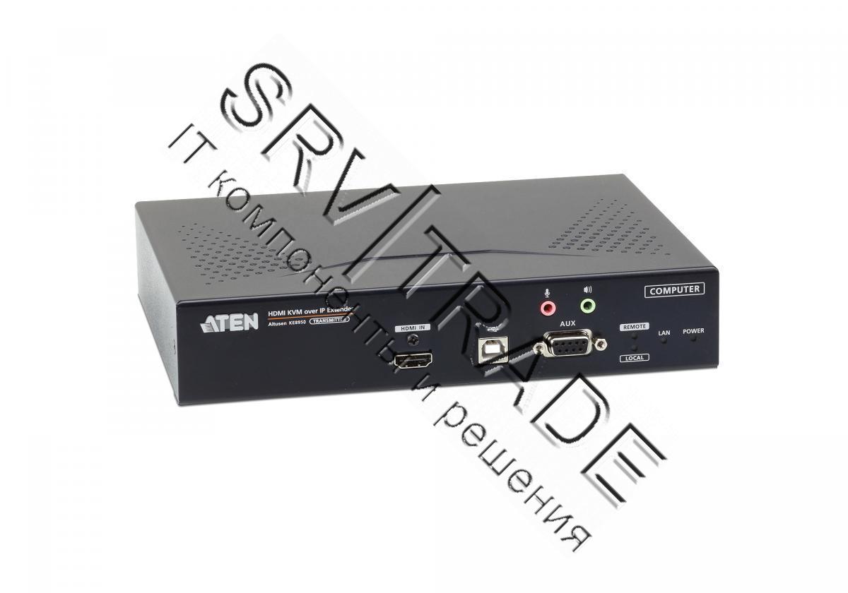 Удлинитель-передатчик, KVM USB HDMI+AUDIO+RS232, 10км при прямом подкл через SFP/неогранич.при подкл через switch, 1xUTP Cat5e, HDMI-I+2xUSB A-тип+USB B-тип+4xMINI JACK+2xDB9+SFP,11xF+M, спец.шнур, без БП, (PoE;макс.разр.3840х2160)[ATEN KE8952T-AX]