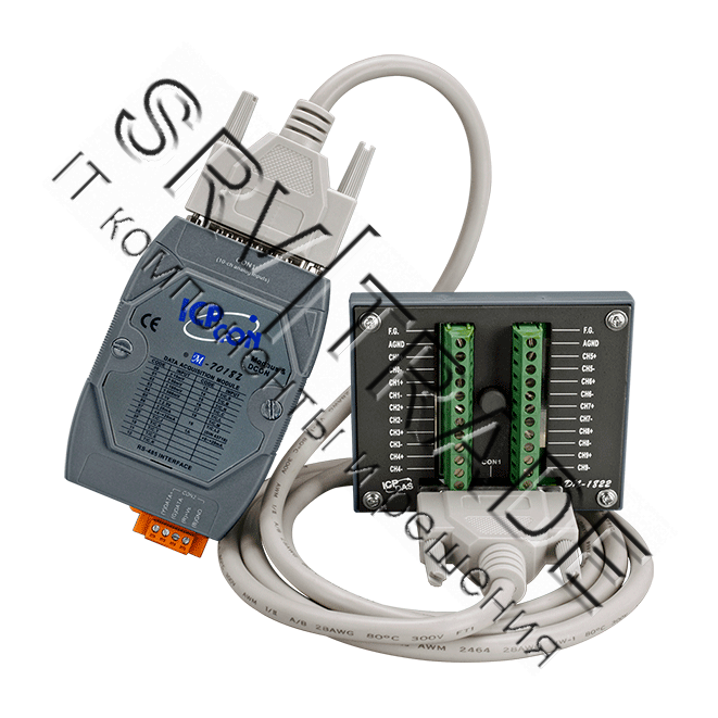 Модуль ввода-вывода, 10 каналов аналогового ввода / 5 каналов дискретного вывода, 2xEthernet, DB-1822 плата, кабель 1.8м ICP DAS