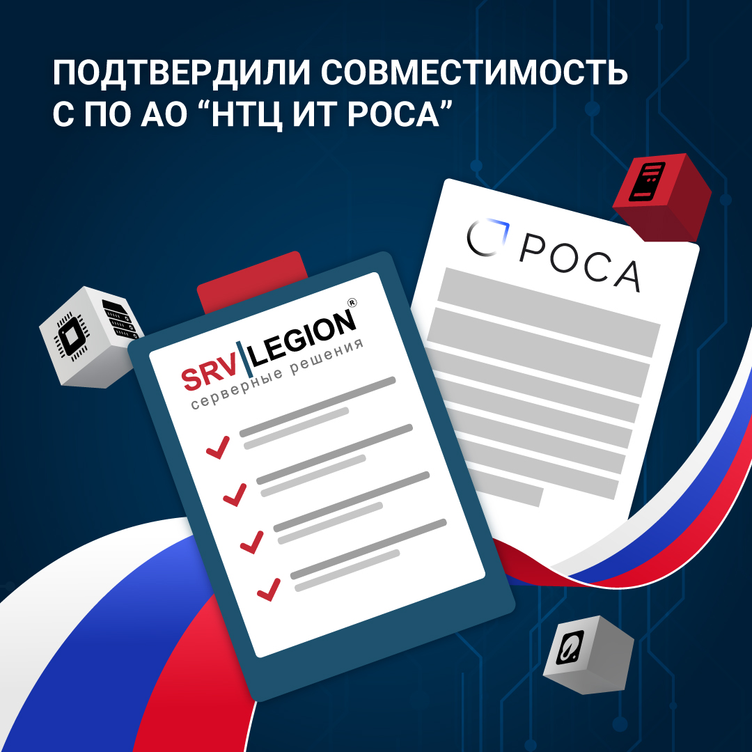Мы успешно провели комплексное тестирование реестровых серверов SRV LEGION ТРБЦ.466219.001 на совместимость с программными продуктами компании АО «НТЦ ИТ РОСА».