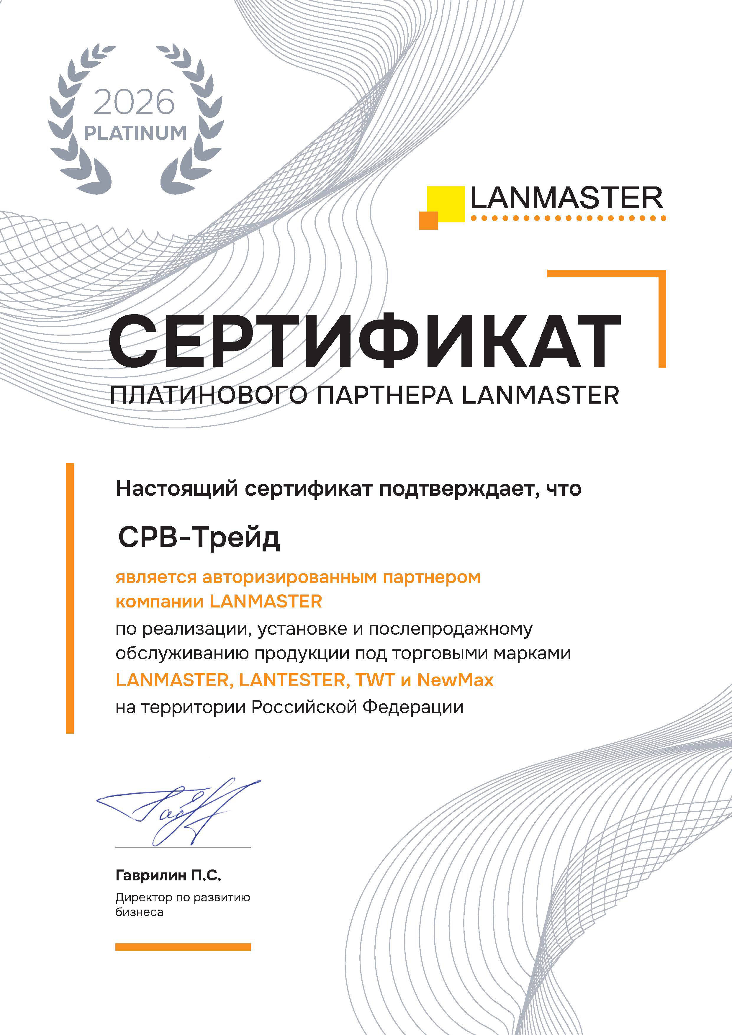 Компания СРВ-Трейд получила статус авторизованного партнёра компании LANMASTER по реализации, установке и послепродажному обслуживанию продукции под торговыми марками LANMASTER, LANTESTER, TWT и NewMax на территории Российской Федерации.